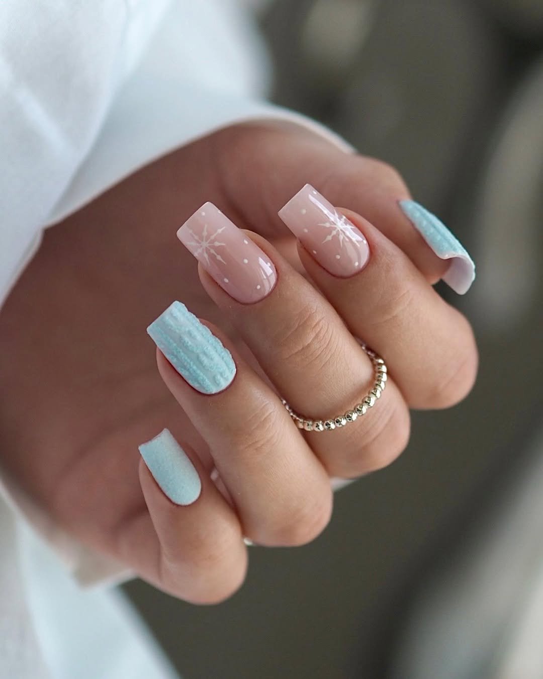 @napaznokciach brings a whole new dimension to winter nails — literally. The cozy knit texture mixed with glossy snowflake art and icy blue polish feels like your favorite winter sweater got a stylish upgrade.