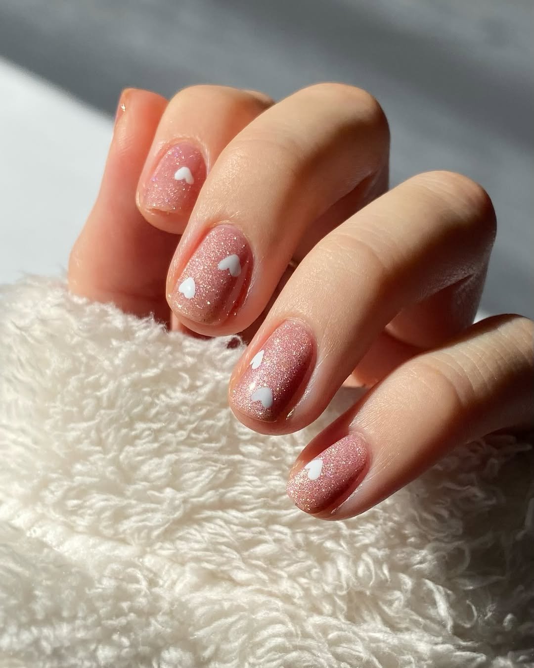 Sometimes, subtle wins — and @polished_yogi nails it (literally) with this delicate blush base scattered with tiny white hearts. It’s giving “quiet love” energy, that perfect in-between of flirty and cozy.