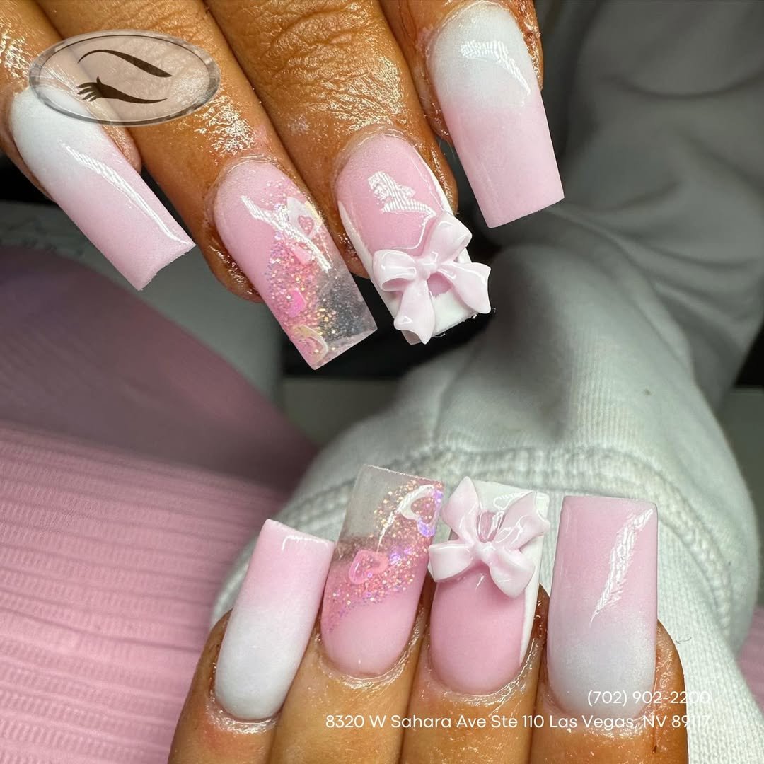 Soft pink tones, sheer gradients, and that sculpted bow detail, this one leans fully into romance.