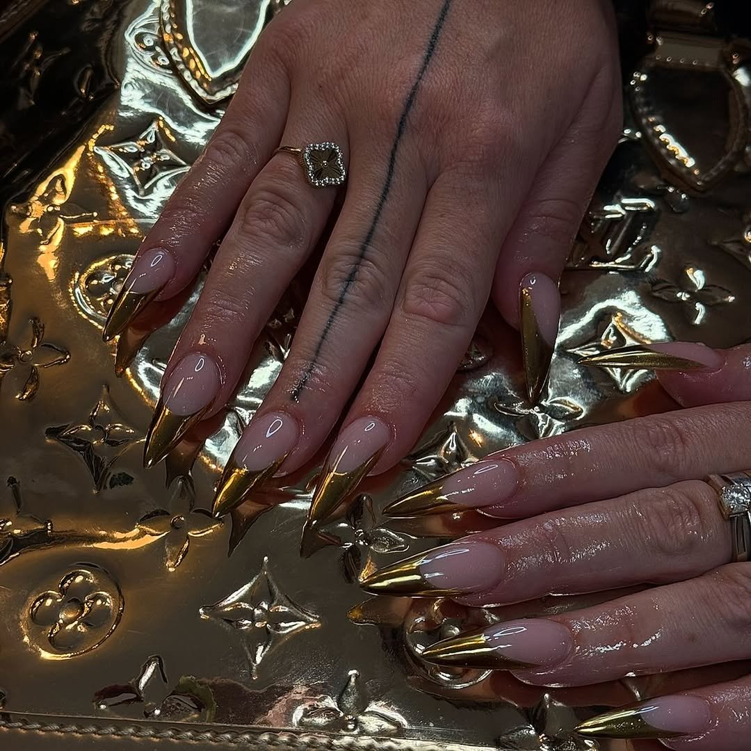 These nails feel dipped in liquid gold. The nude base keeps things grounded, while the metallic tips add that rich, glowing edge.