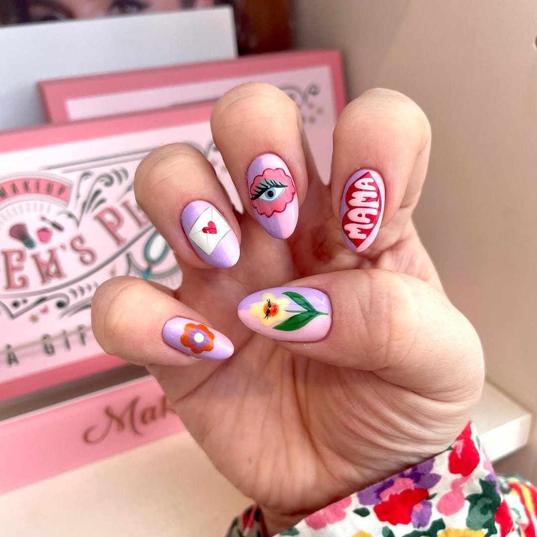 It’s giving gift-wrapped energy, like something special waiting to be opened. Perfect for Mother’s Day when you want your nails to feel joyful, a little extra, and completely unapologetic.
