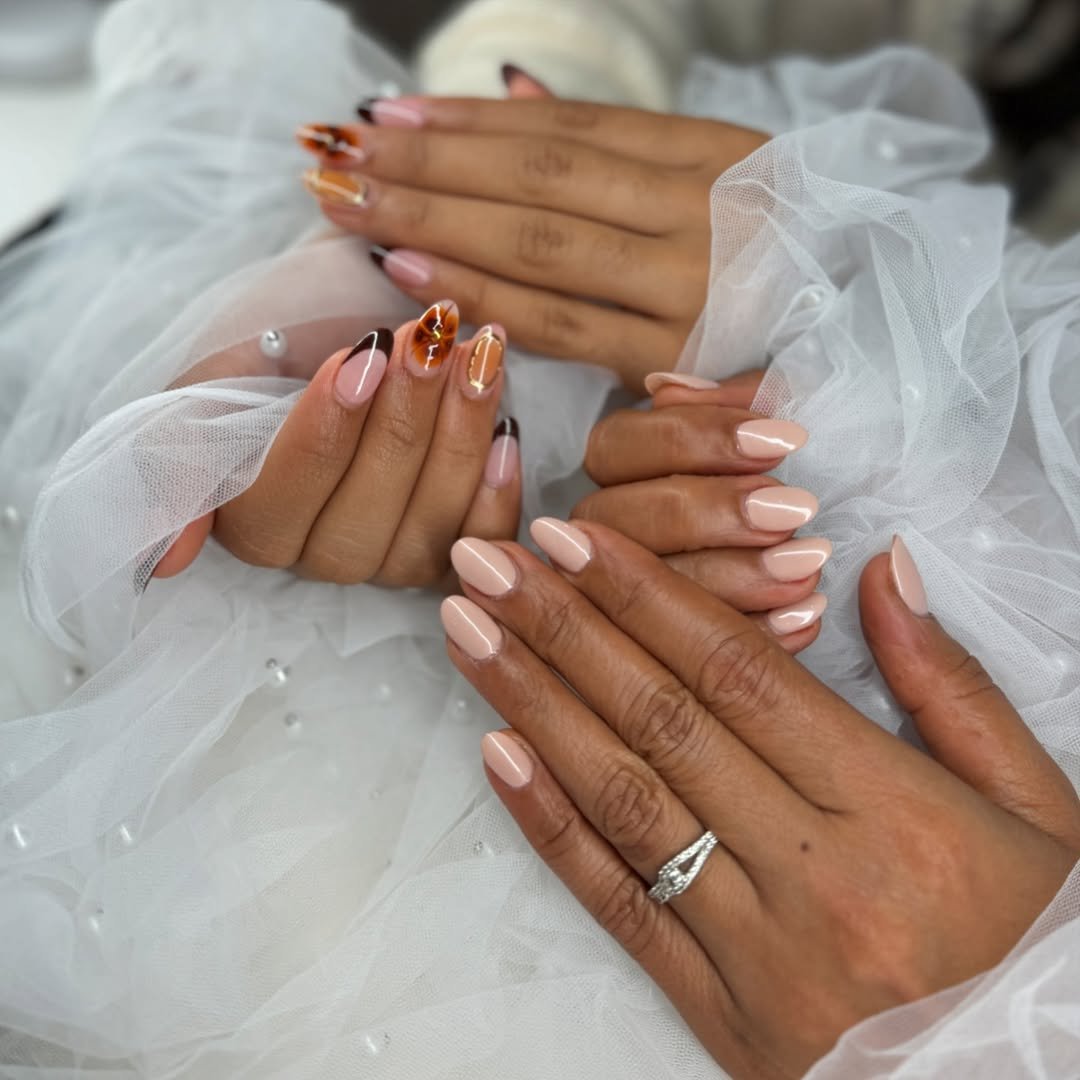 This look is all about restraint. A clean, creamy nude with just a hint of accent detail feels timeless in the best way.