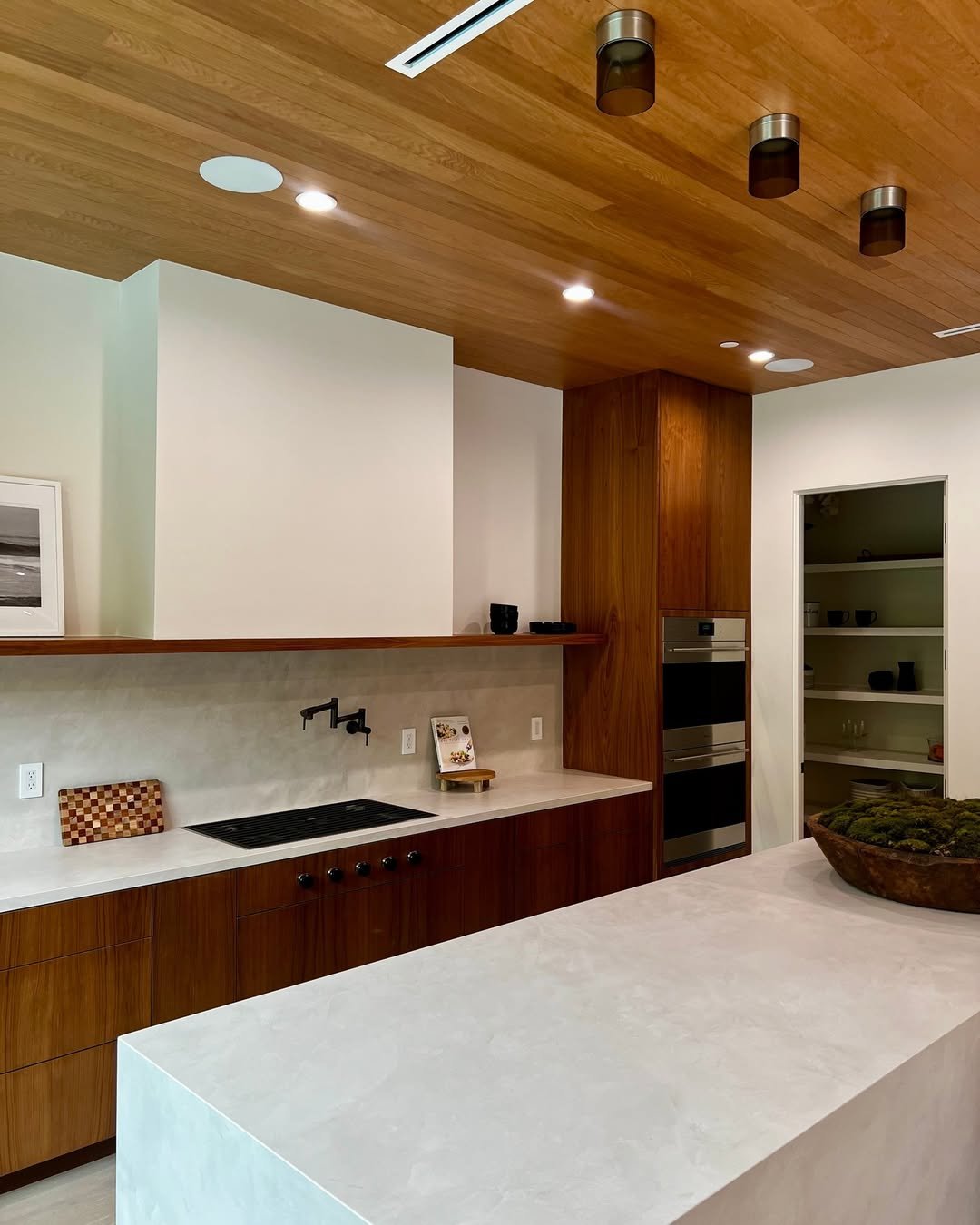 This tucked-away pantry space feels thoughtful and refined. The wood cabinetry is clean and simple, letting the layout and organization take the spotlight.