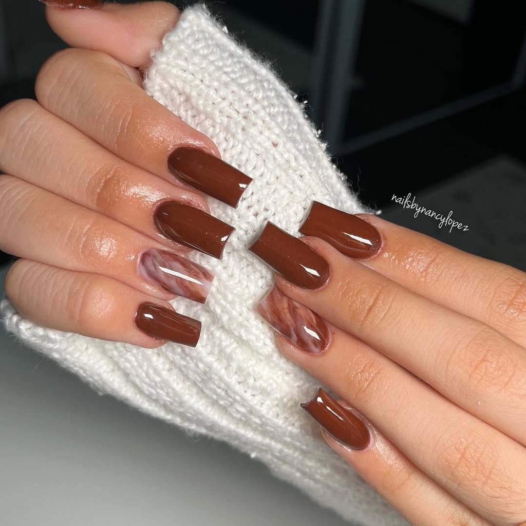 There’s something wildly confident about a full set in one shade. No distractions, no fuss. Just a rich brown that works with every outfit, from chunky knits to leather jackets. It’s the equivalent of a good blowout—effortless but unforgettable.