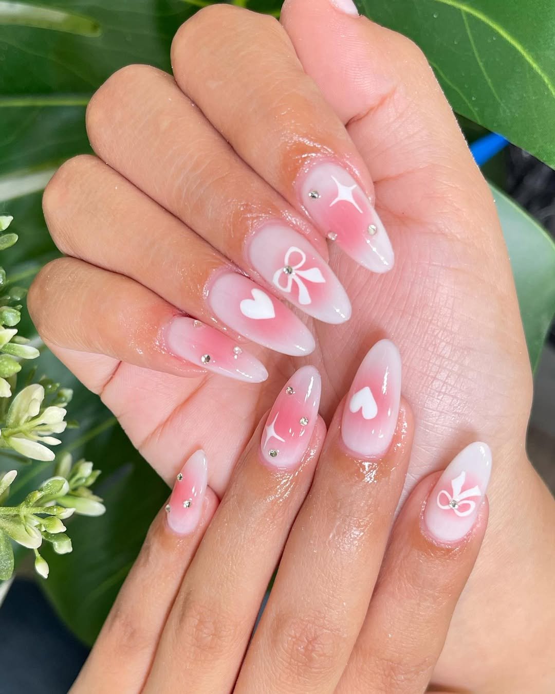 Ending on a sweet note — these soft pink brushed fades with tiny hearts and gems feel dreamy, romantic, and effortlessly pretty. It’s giving main-character energy without trying too hard.