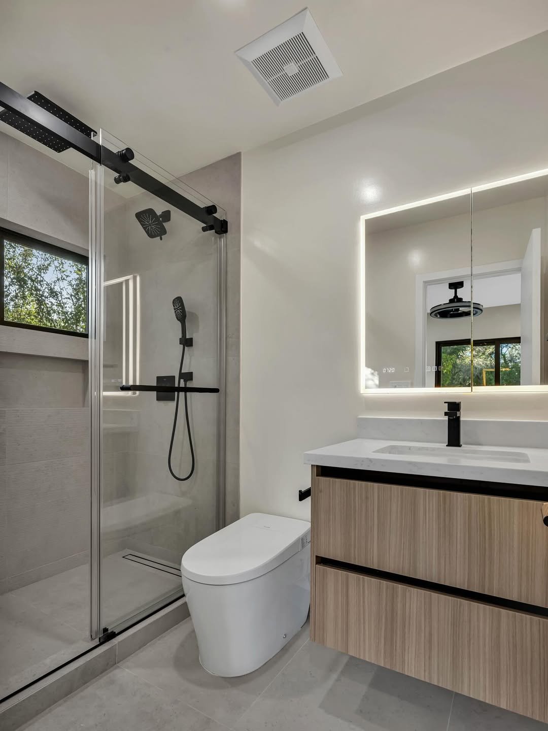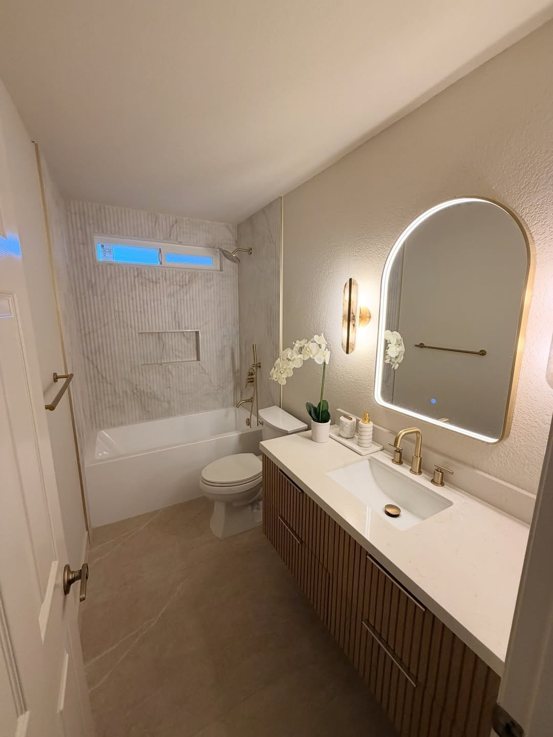 That backlit mirror adds a subtle luxury touch without a full renovation. It’s the kind of swap that instantly modernizes a bathroom without touching the layout.