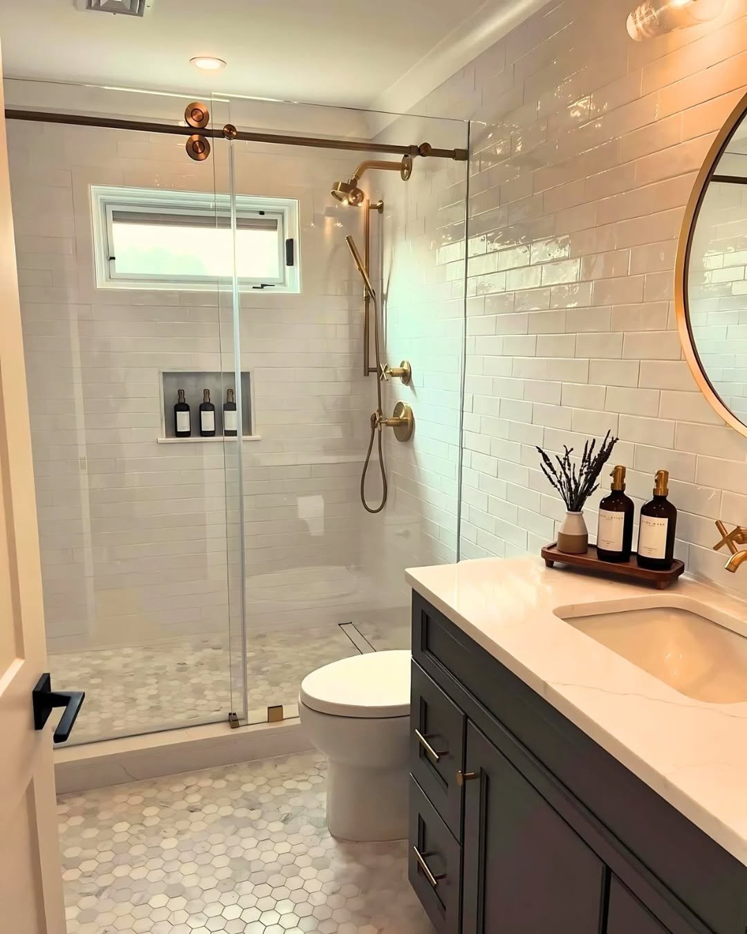 It’s proof that sometimes the upgrade isn’t tile or color—it’s layout. Swap bulky frames for sleek glass, and the whole vibe changes.
