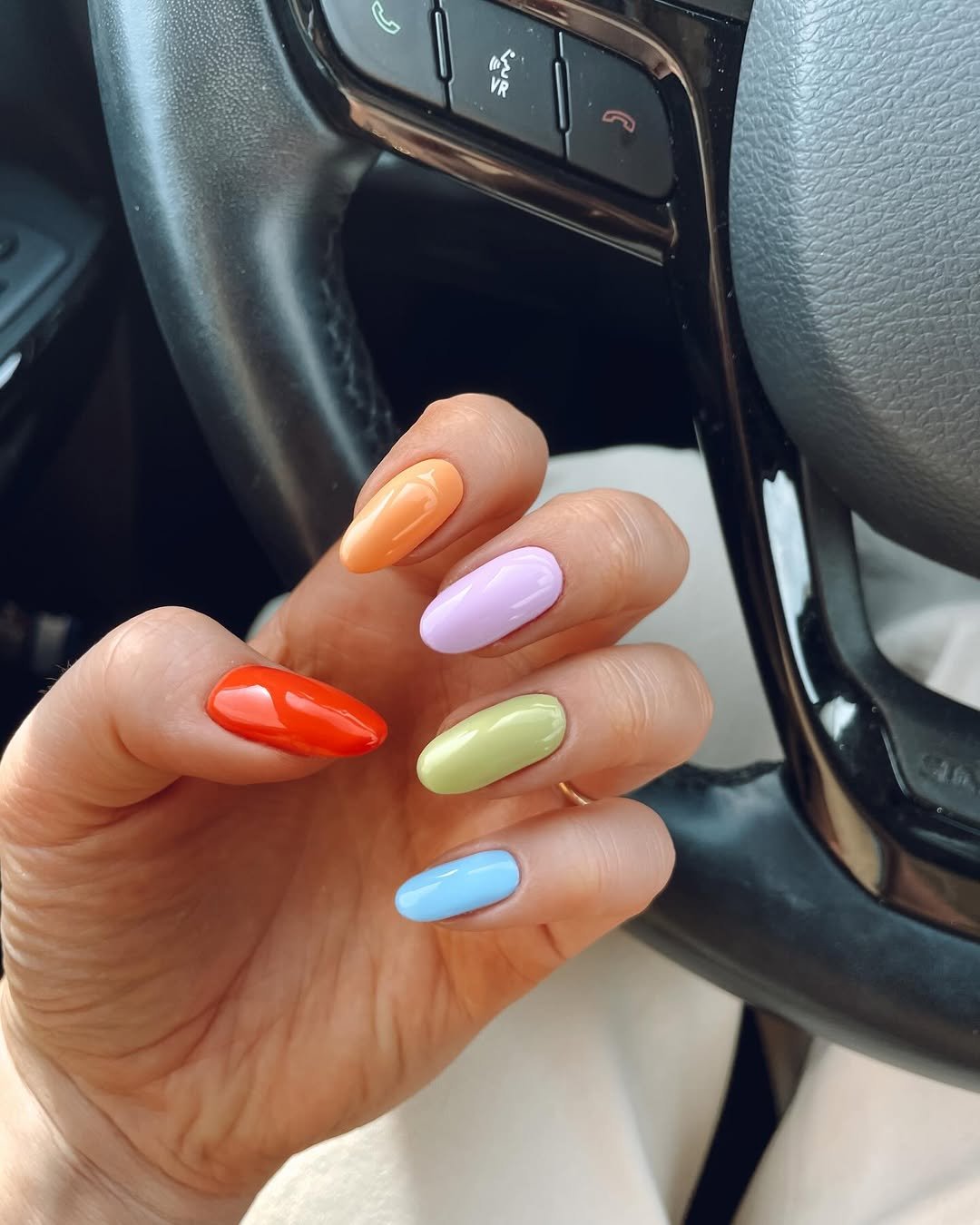 Bright but controlled—this set balances playful colors with a neat, wearable shape. Each nail stands on its own without overwhelming the look.