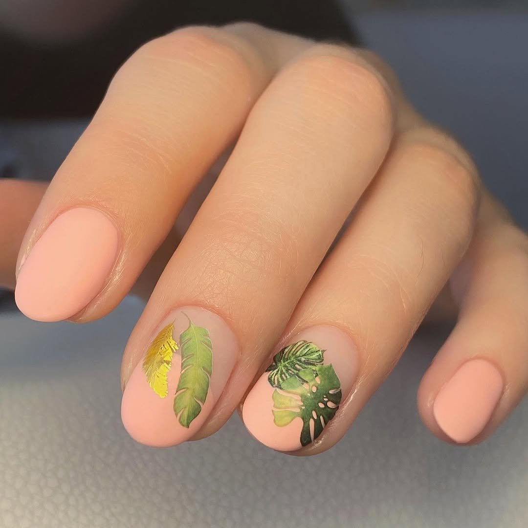 Soft blush bases with delicate green leaf details—this set feels fresh, grounded, and quietly beautiful. It’s very “slow mornings and deep breaths” energy.