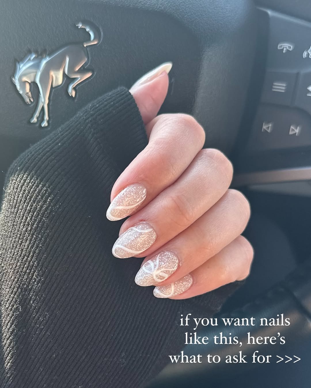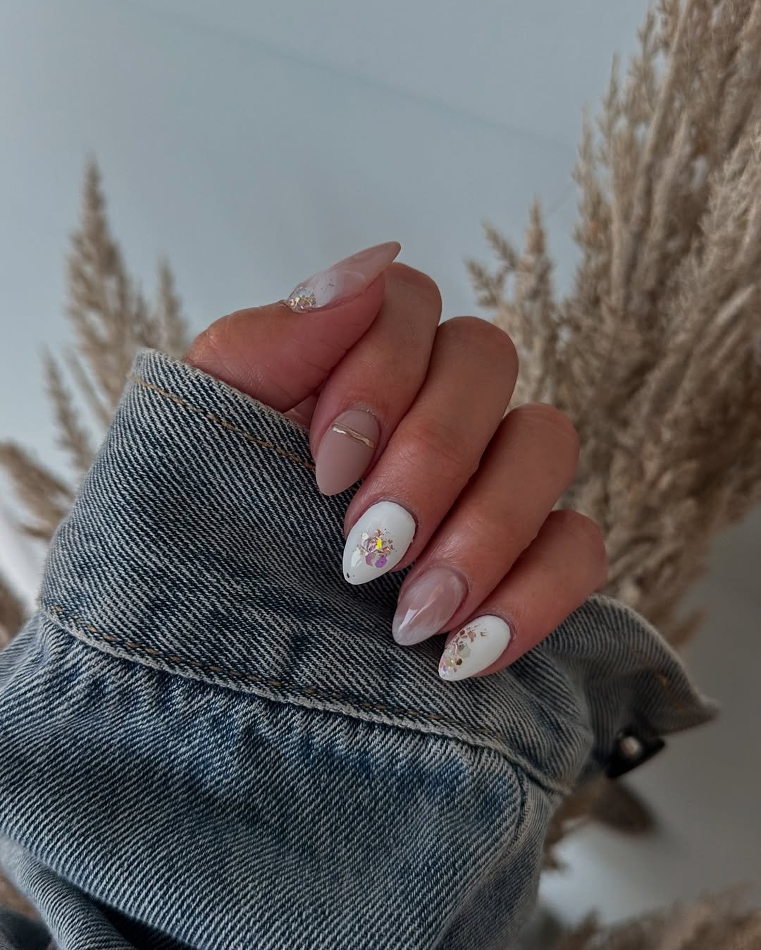 This glittery nude moment is understated in the best way. The fine shimmer catches light gently, making your nails feel polished without screaming for attention.