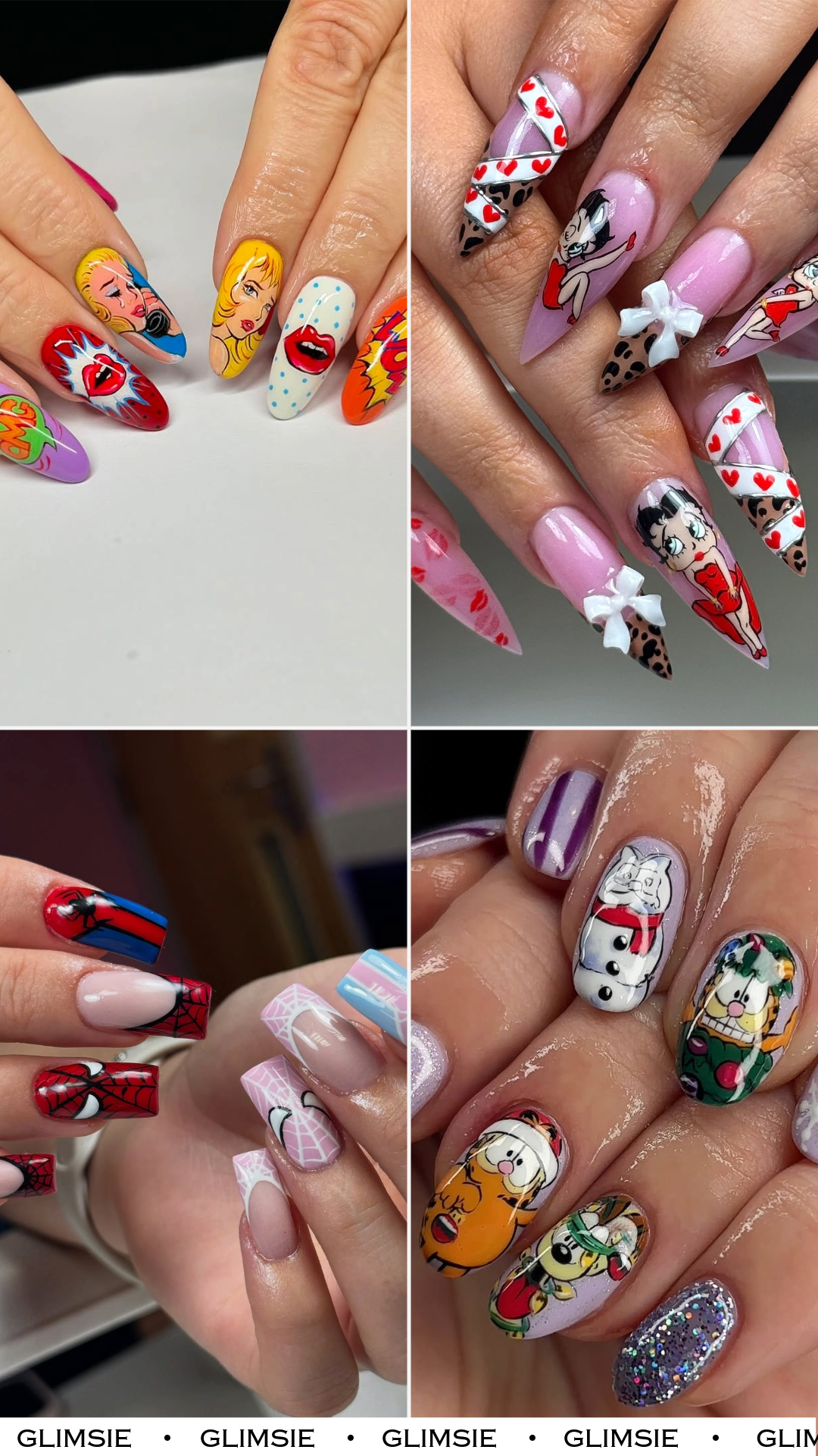 This list of 26 cartoon nail ideas is packed with bright combos, creative patterns, and modern twists that make manicures feel lively and fun. Whether you love subtle nods to your favorite characters or full on graphic designs, you’ll find inspiration to bring color, contrast, and personality straight to your fingertips.