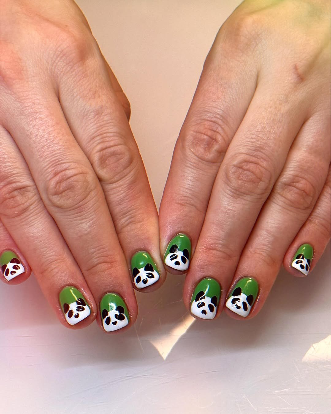 Green bases topped with tiny panda faces? Instant serotonin. The short length keeps things practical while the matching design across both hands makes it feel clean and cohesive.