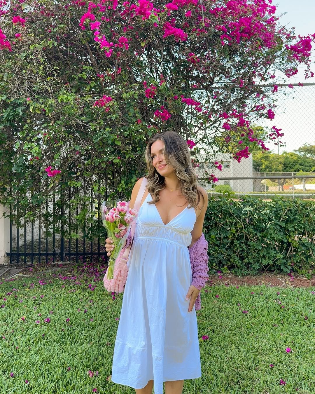 A white sundress always feels a little magical, especially surrounded by bright blooming flowers. This one has that romantic, slightly whimsical charm — feminine without fuss, soft without being precious. It just floats in the breeze.