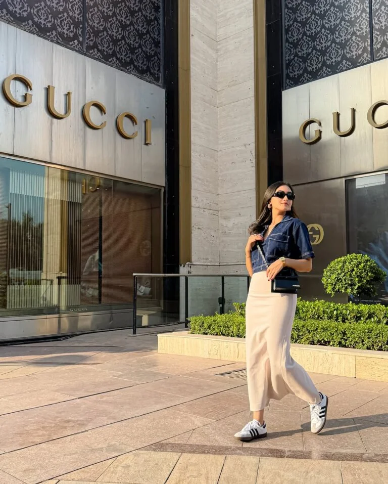The white sneakers add that grounded, everyday touch, making the whole look feel delightfully approachable without losing its elegance.