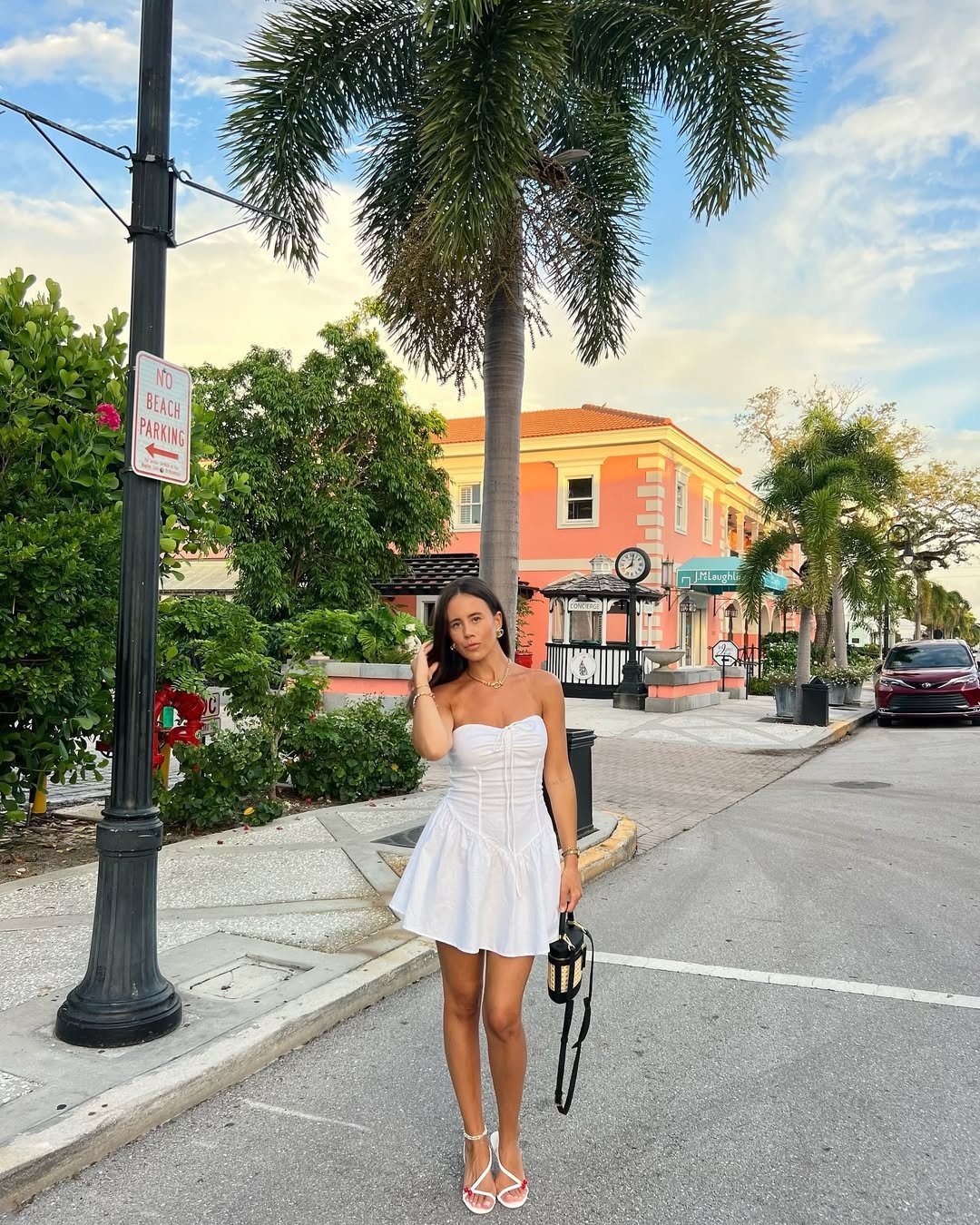 A white corset mini under palm trees just feels like spring showing off. The structured bodice gives shape, while the flared skirt keeps it playful and light. It’s crisp, feminine, and made for golden hour walks past pastel buildings.