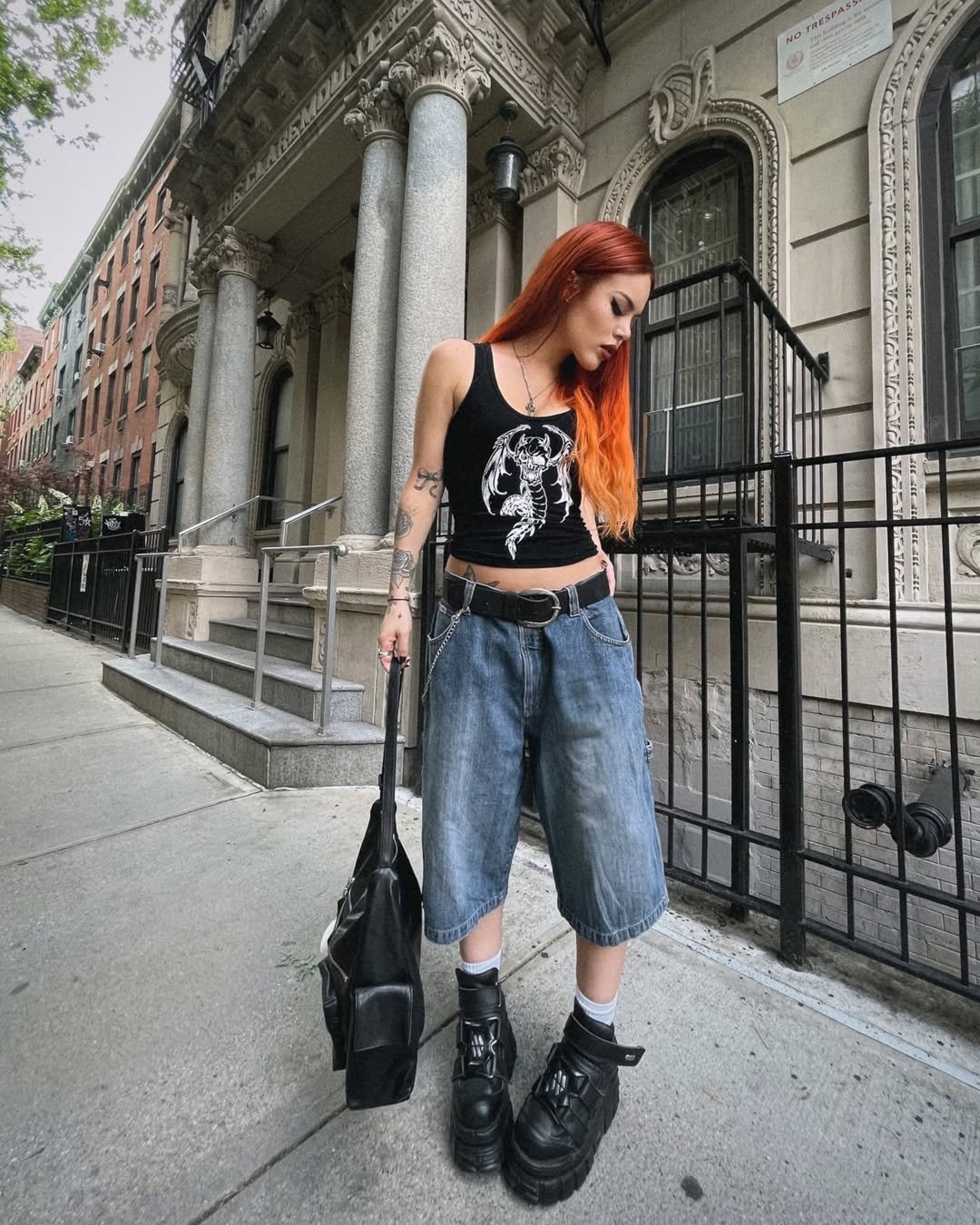A fitted tank with oversized denim and chunky boots leans into a moodier summer aesthetic. The darker tones and layered accessories give it that lived-in, downtown feel.