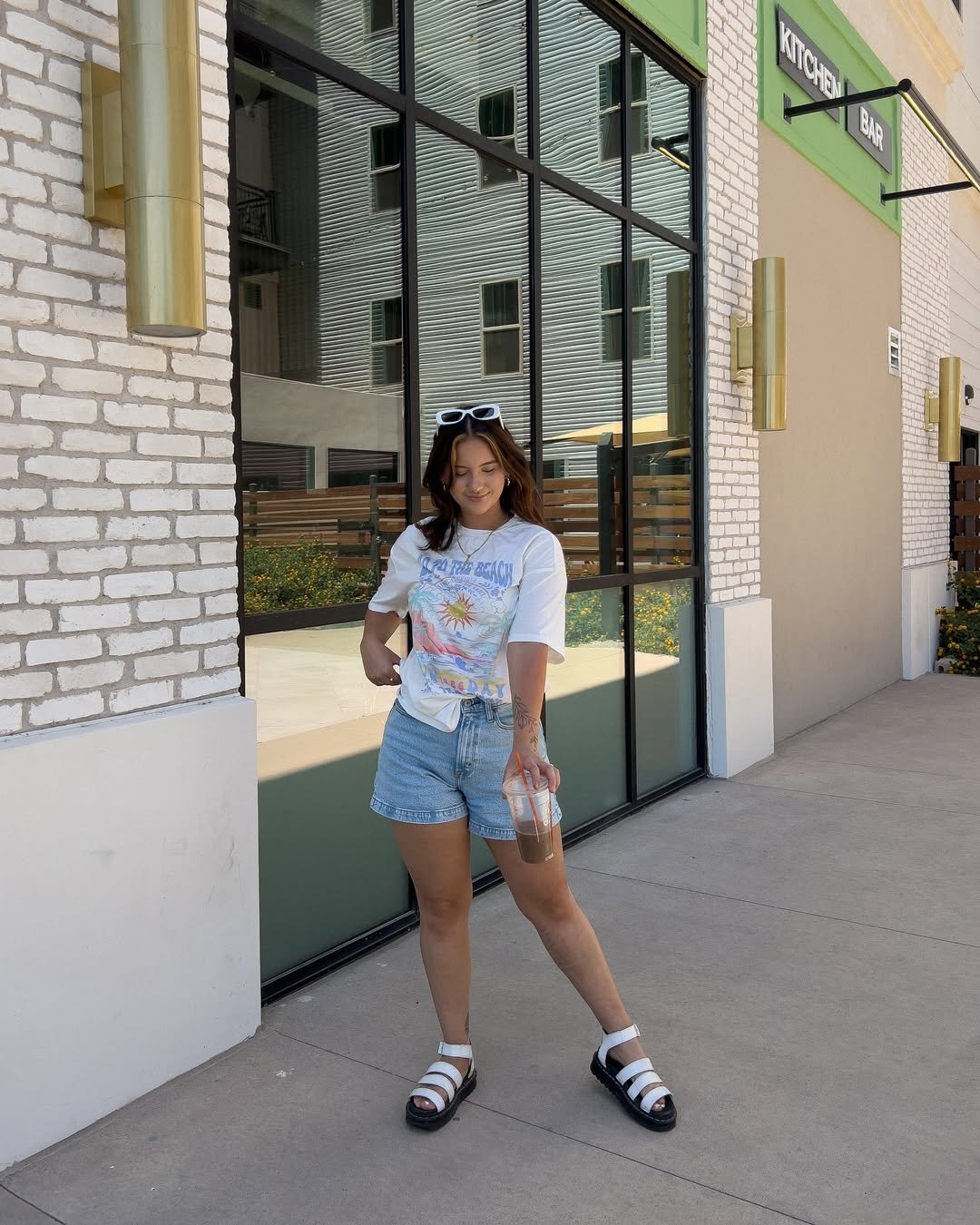 A vintage-style graphic tee tucked into high-waisted shorts feels like the easiest kind of summer outfit. Add chunky sandals and a cold drink in hand, and it becomes a whole mood.