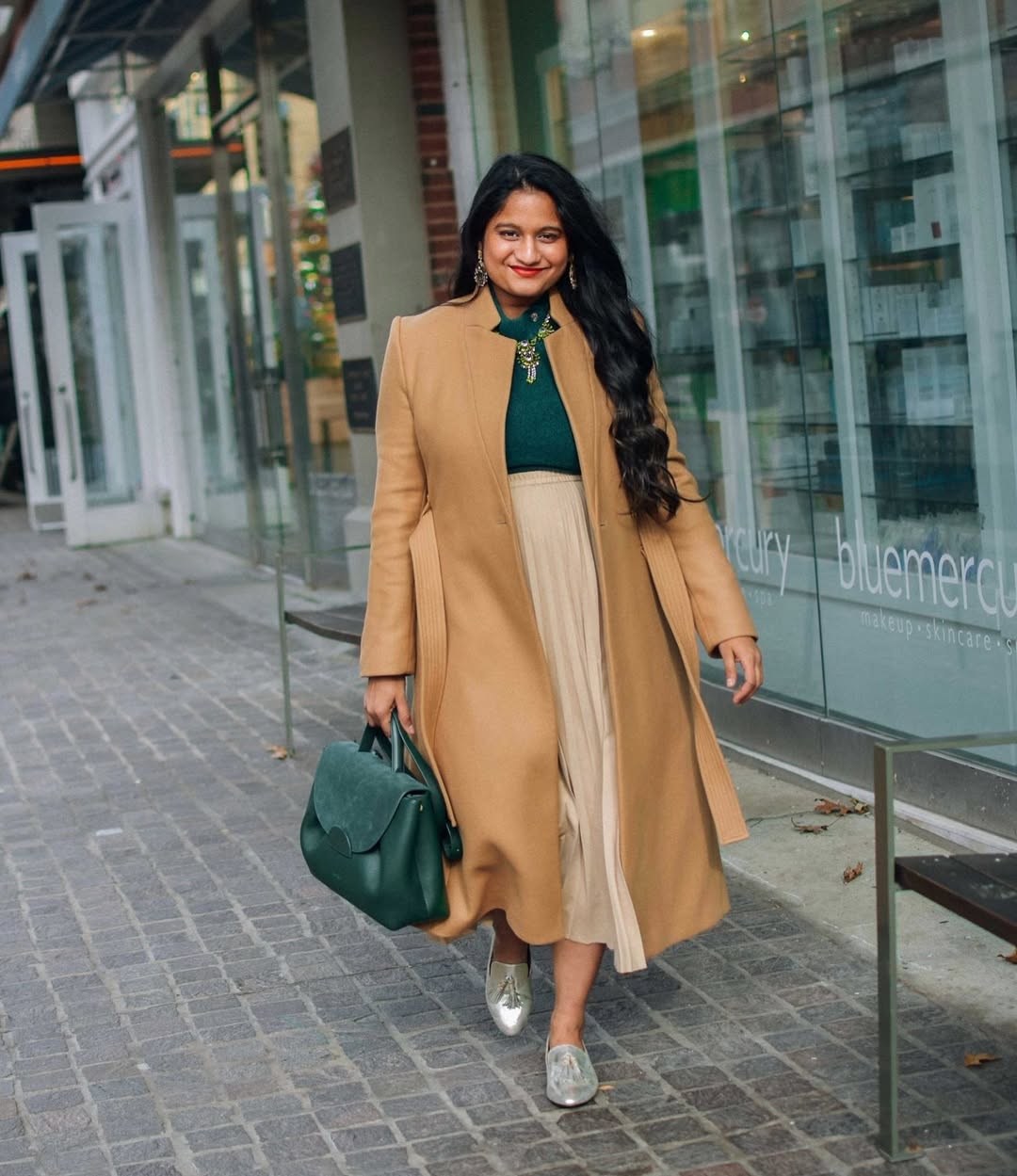 Now this is how you do Thanksgiving luxe. @stylemesuri builds her look around a rich palette of camel, forest green, and champagne—bringing together textures and tones that feel decadent without being overdone.
