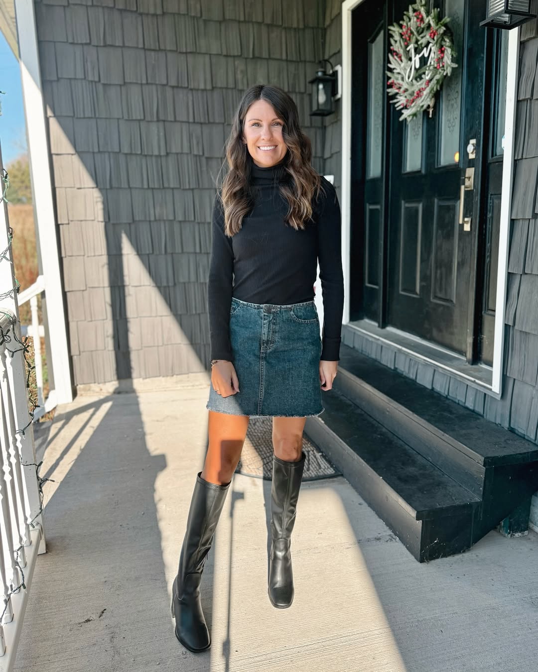 @marissawearsanoutfit proves that sometimes, less really is more. Her black turtleneck and denim mini create the perfect canvas for tall black boots — a combo that’s simple yet so striking. It’s a look that feels a little city, a little countryside, and completely timeless.