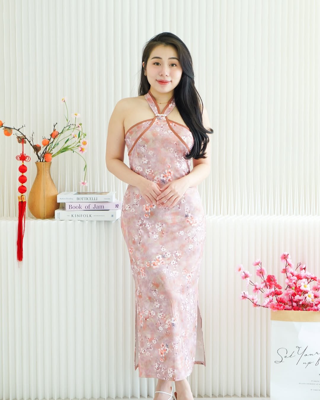 What really works here is the balance. It’s festive enough for New Year gatherings, yet calm enough to wear beyond the celebration. Proof that Chinese New Year looks don’t always have to shout in red to make an impression.