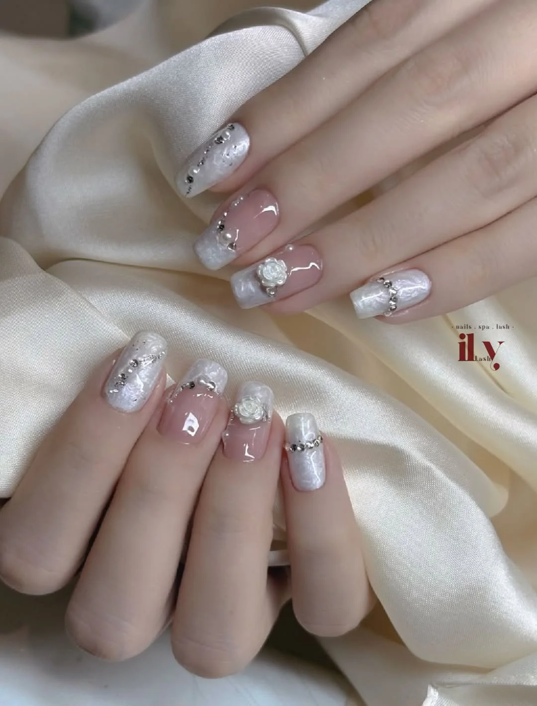 It feels like something you’d wear to a starlit garden ceremony or an enchanted winter wedding. There’s romance layered into every detail — and that’s what makes these nails so special. It’s not just pretty, it’s poetic.