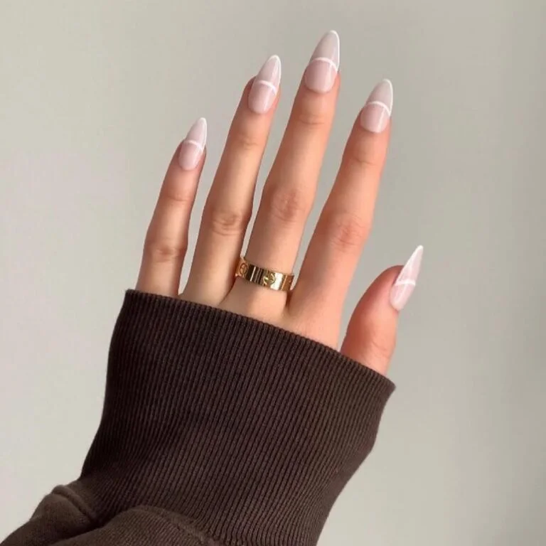 This is the kind of design that makes you lean in. Barely-there white lines trace the tips of these sheer pink nails, creating a soft outline effect that’s both modern and whisper-light. It’s like wearing invisible lace — delicate, thoughtful, and a little bit magical.