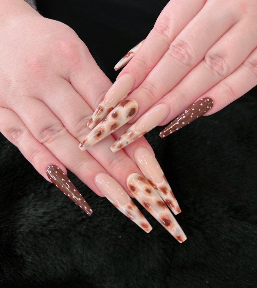 Rich, glossy, and a little unexpected, this tortoiseshell finish brings a deeper, more grounded take on Mother’s Day nails. The warm amber tones layered with darker accents create that glassy, almost molten effect.