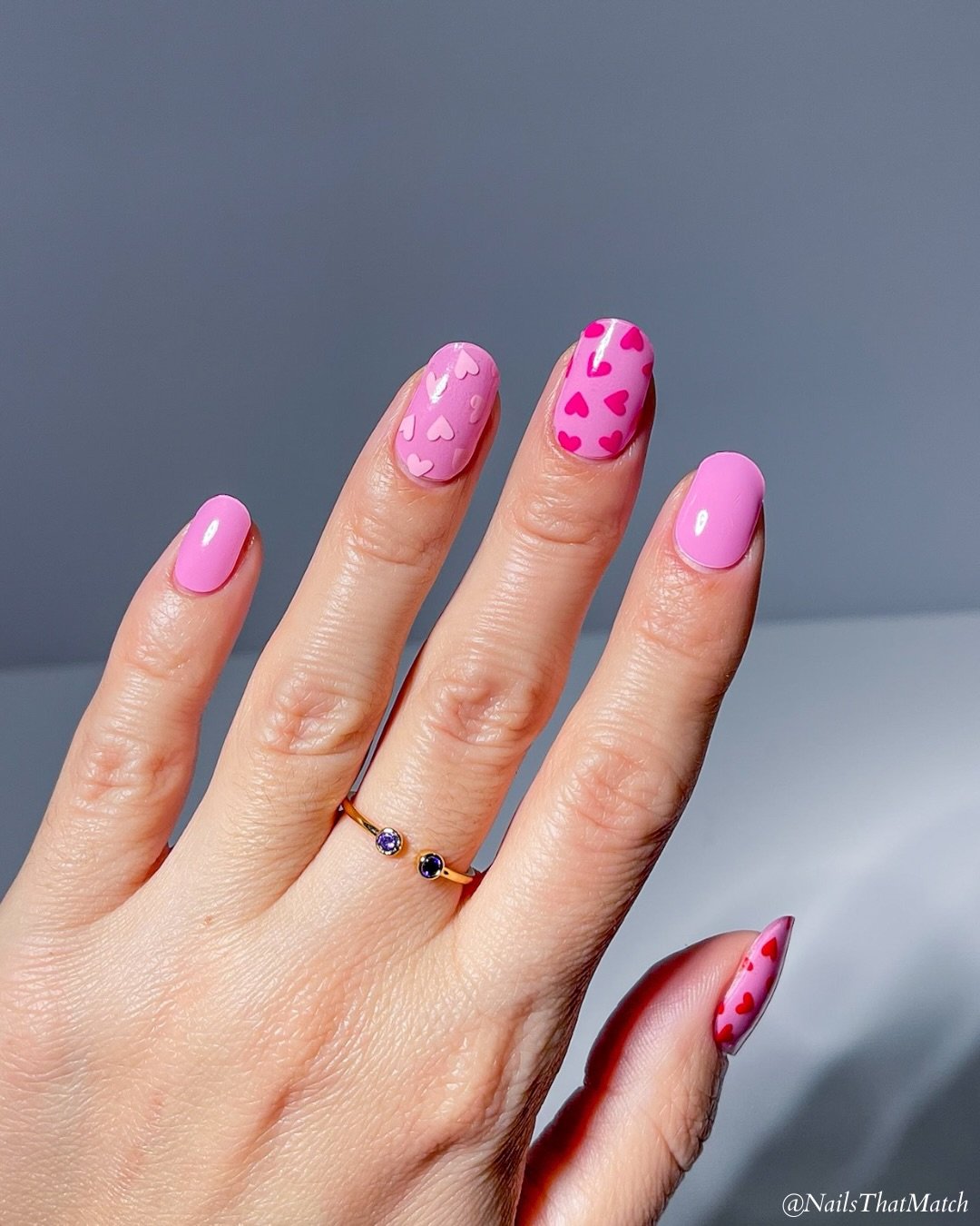 This set leans into charm in the best way. Soft pink nails paired with tiny heart details bring a light, cheerful energy that still feels put together.