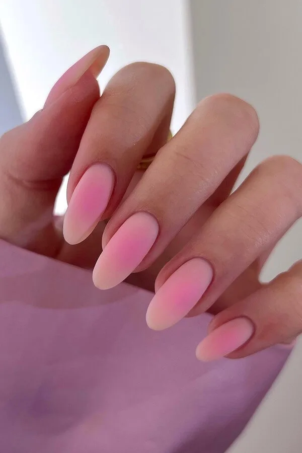 This airy, barely-there ombre melts from soft blush to milky neutral like cotton candy dissolving in warm air. It’s simple, but it whispers elegance — the kind of mani that pairs perfectly with soft knits, minimal jewelry, and slow Sunday plans.