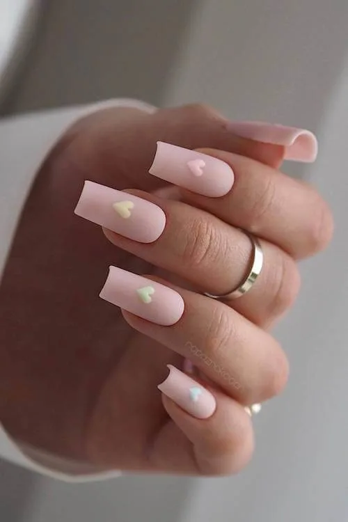 This set is what happens when minimalism and cuteness find the perfect middle ground. Matte blush pink as the base and tiny pastel hearts sprinkled on top—adorable, but still grown-up.
