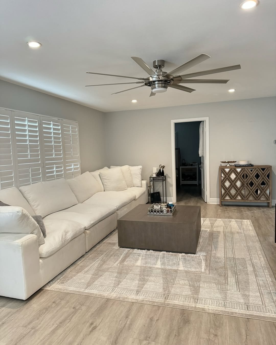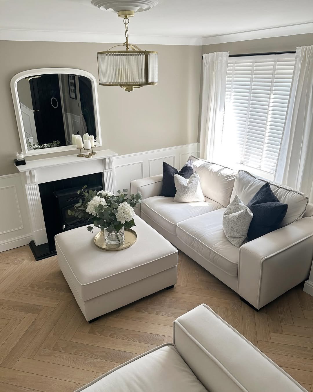 It’s minimal, but not cold. A few warm-toned pillows and natural textures keep it from feeling flat, making it perfect for everyday living that still feels styled.