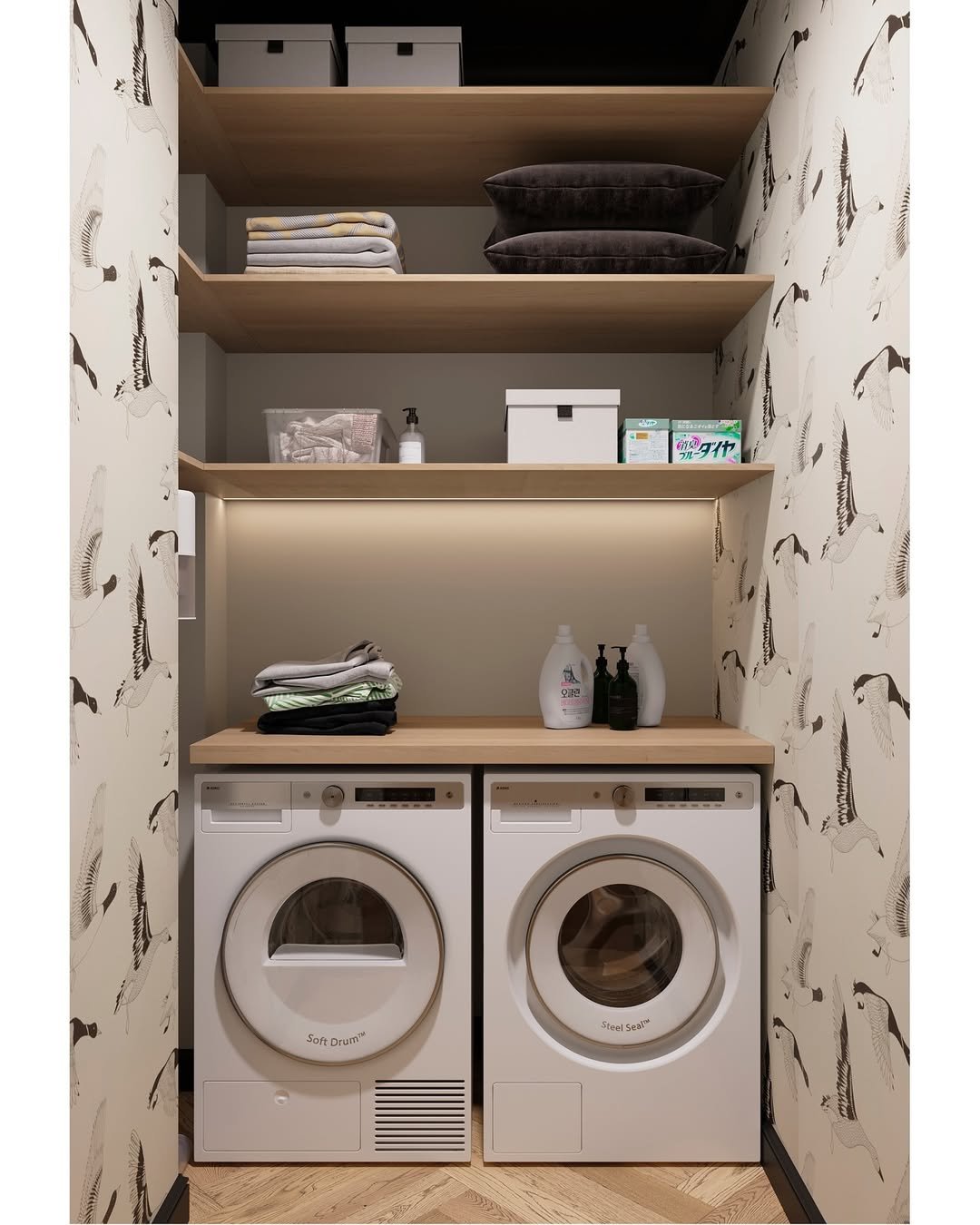 It’s the kind of space that turns chores into a rhythm rather than a task. Keeping everything concealed yet accessible is what makes it work, clean but still warm.