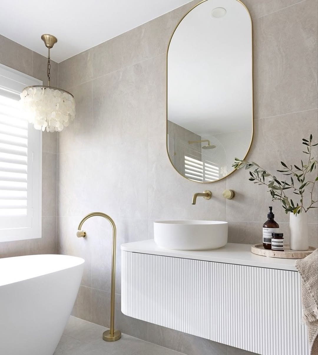 It’s calm, spacious, and just a little bit dreamy. The kind of bathroom where time slows down without you even noticing.