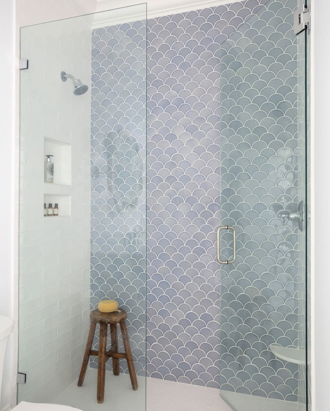 Scalloped tiles can go either way—but this? This is how you do it right. The soft blue tone keeps it subtle while the pattern adds that quiet wow factor.