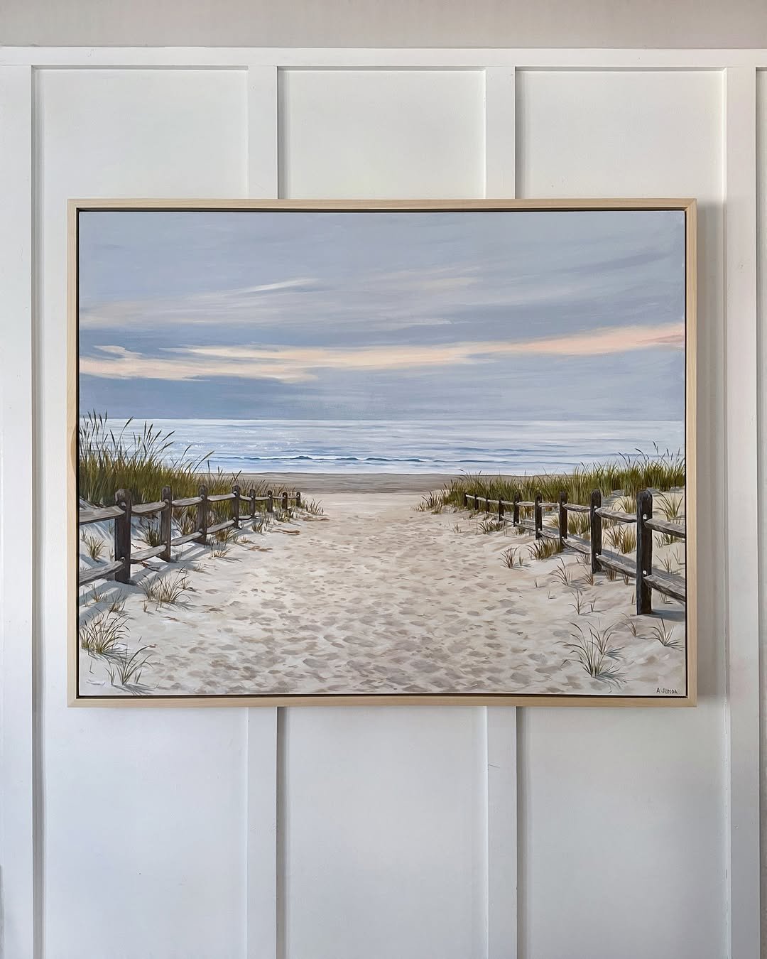 It’s the kind of artwork that doesn’t compete with a room, it settles into it. Hang something like this against paneled walls and let it anchor the space, calm, grounded, and endlessly easy to live with.