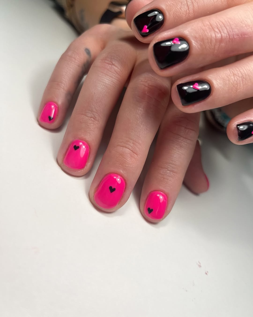 This design proves that simple can still be seriously cute. The bold hot pink nails paired with glossy black ones create a striking contrast that feels playful and a little edgy at the same time.
