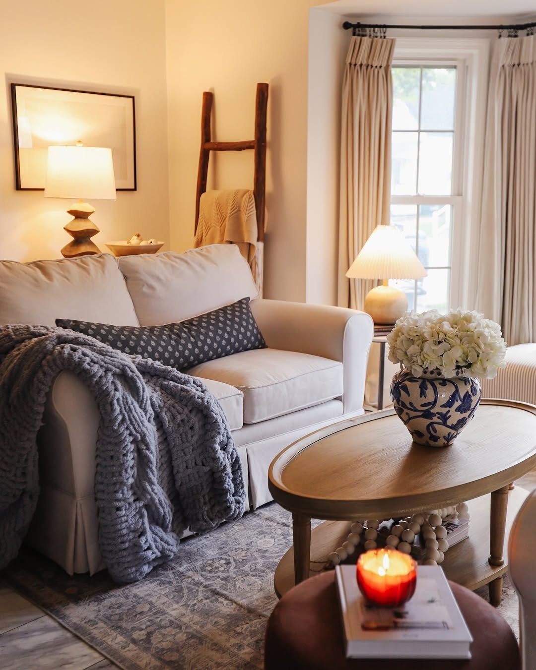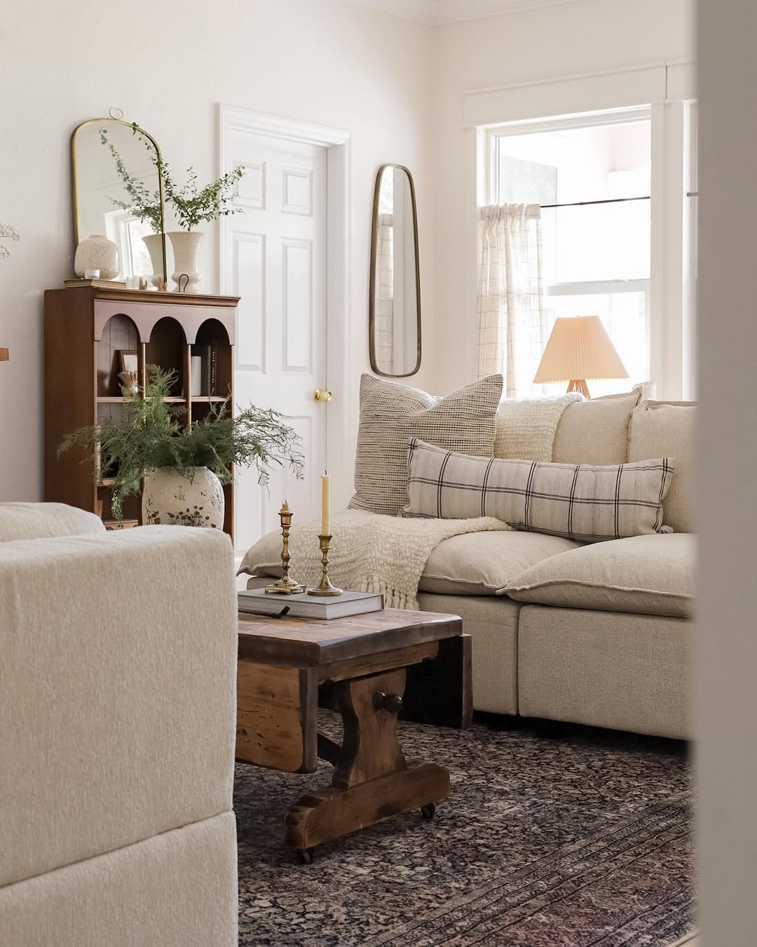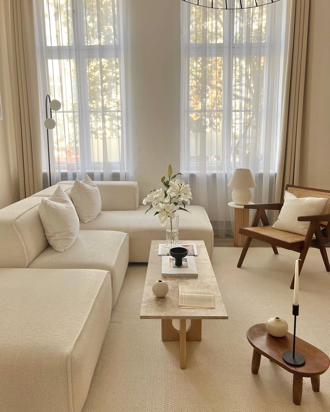 Pair that with soft neutrals, a simple coffee table, and layered fabrics, and you’ve got a space that feels calm, collected, and endlessly comfortable.