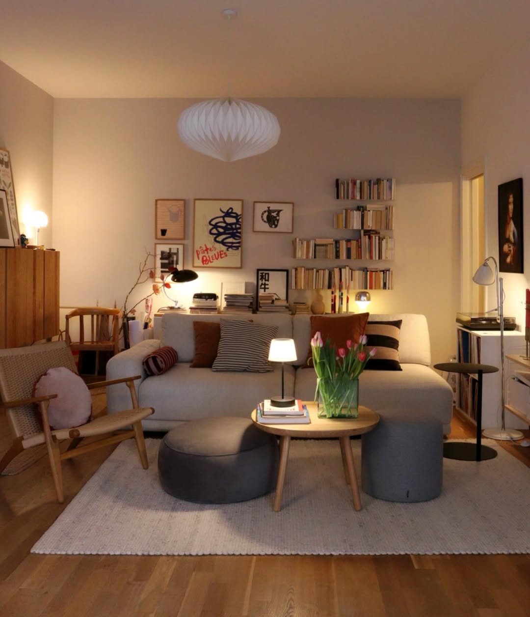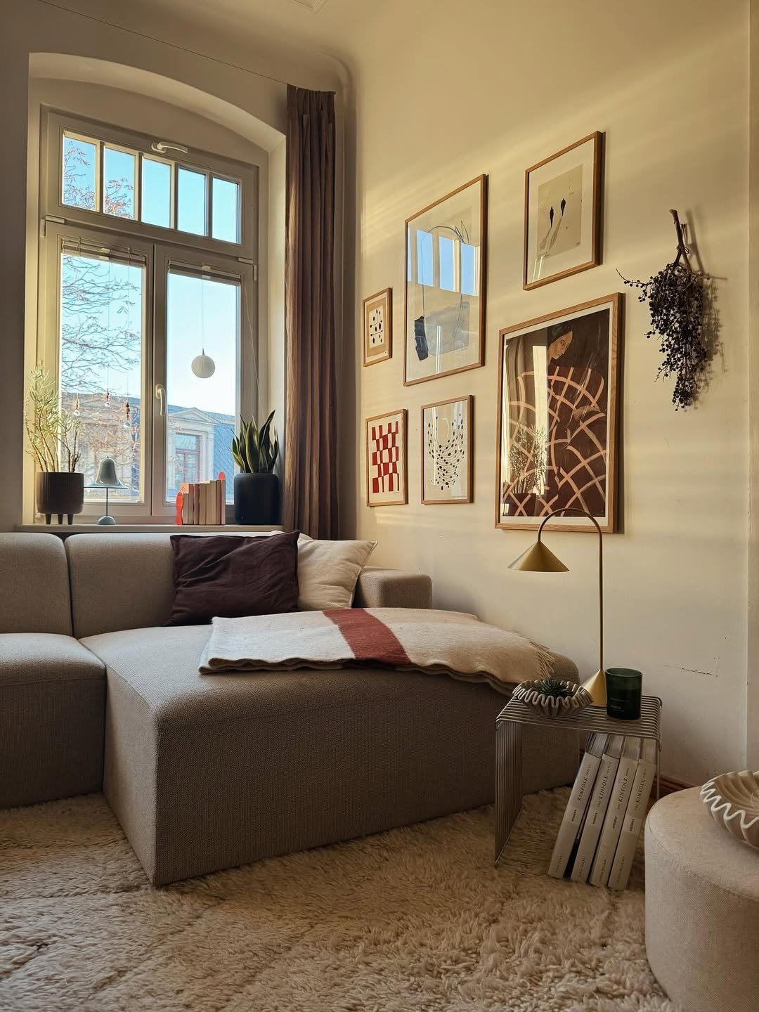 This little corner is proof that cozy doesn’t need a lot of space. The warm lighting, gallery wall, and soft textures create a vibe that feels intimate and personal.
