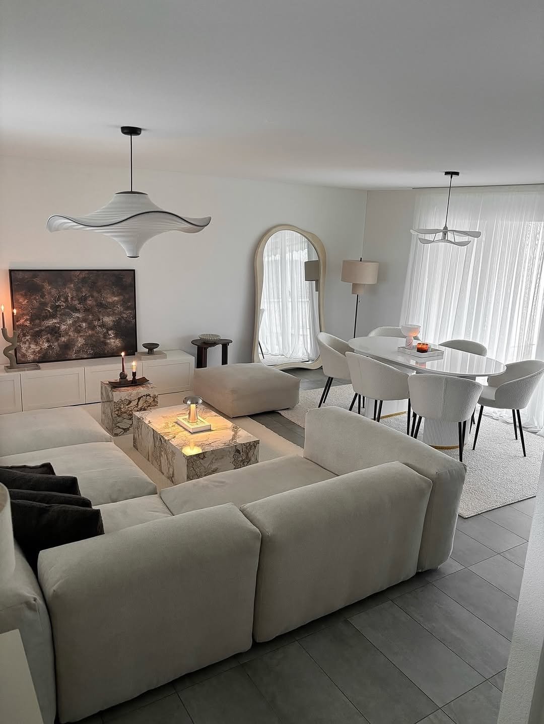 This room is all about quiet luxury. Clean lines, soft tones, and those sculptural pieces create a space that feels elevated but still comfortable.