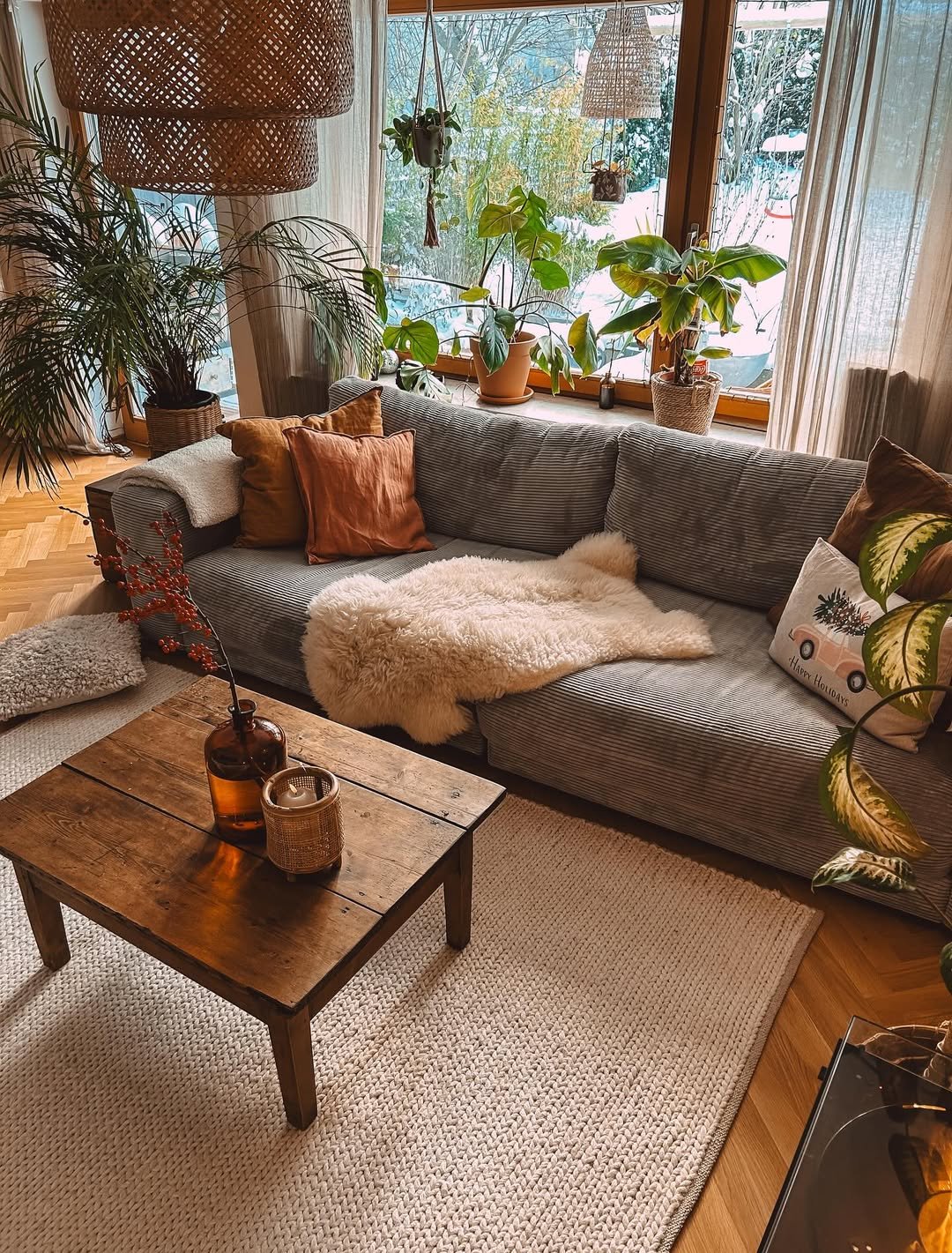 This is that timeless cozy everyone loves. Neutral tones, rustic wood, and layered decor come together in a way that feels both polished and welcoming.
