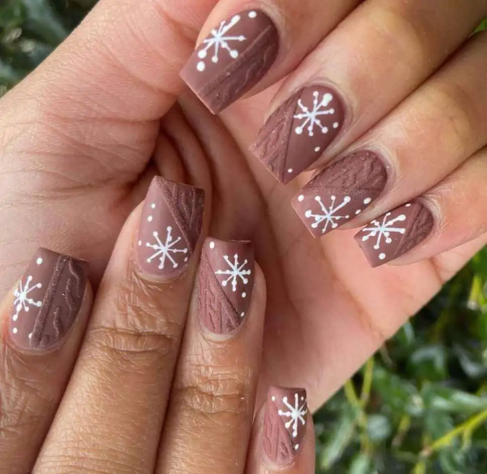 Cocoa brown snowflakes and cable-knit embossing? Yes please. @creamnailbar nails the winter aesthetic with a twist: earthy tones instead of the usual reds and whites, making this feel both timeless and modern.