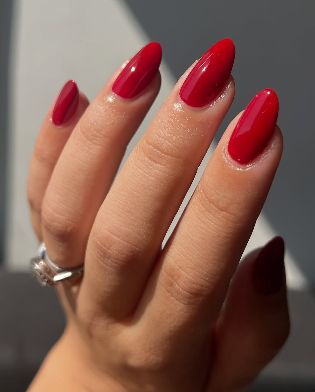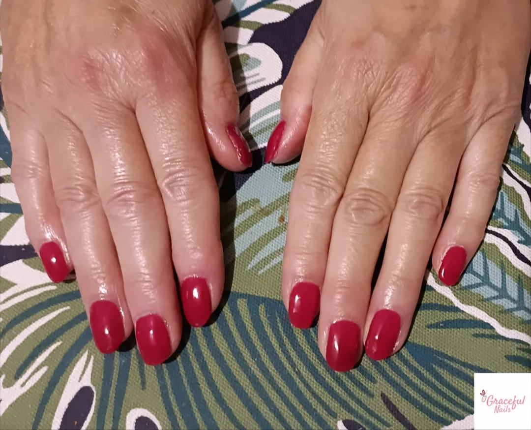 A deep, glossy cranberry that looks good anywhere, even in natural light. Clean shape, flawless application, no distractions—just pure color confidence.