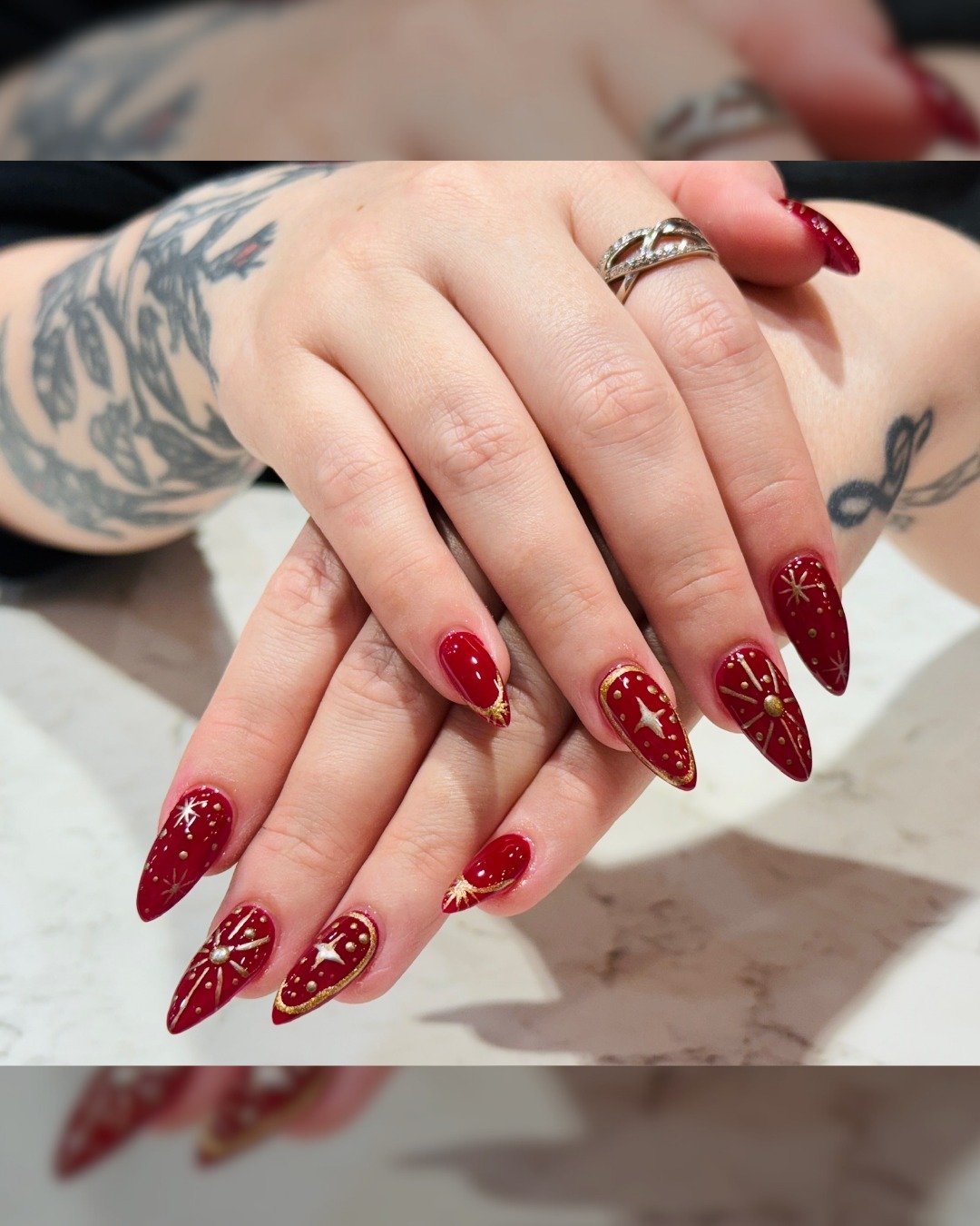 That gold foil against cranberry red? Instant glow-up. The contrast adds texture and dimension without overpowering the base color.