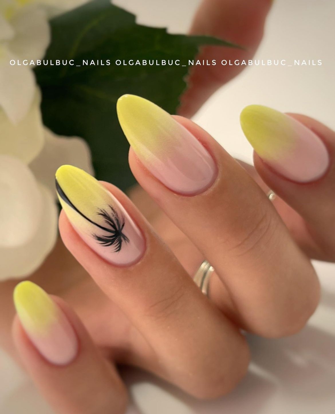 One nail features a delicate black palm silhouette that adds just the right tropical touch. It’s minimal, modern, and effortlessly summery.