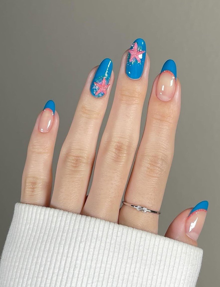 Paired with the tiny white starfish details, the design feels simple but very intentional. It’s like a calm ocean scene quietly sitting on your fingertips.
