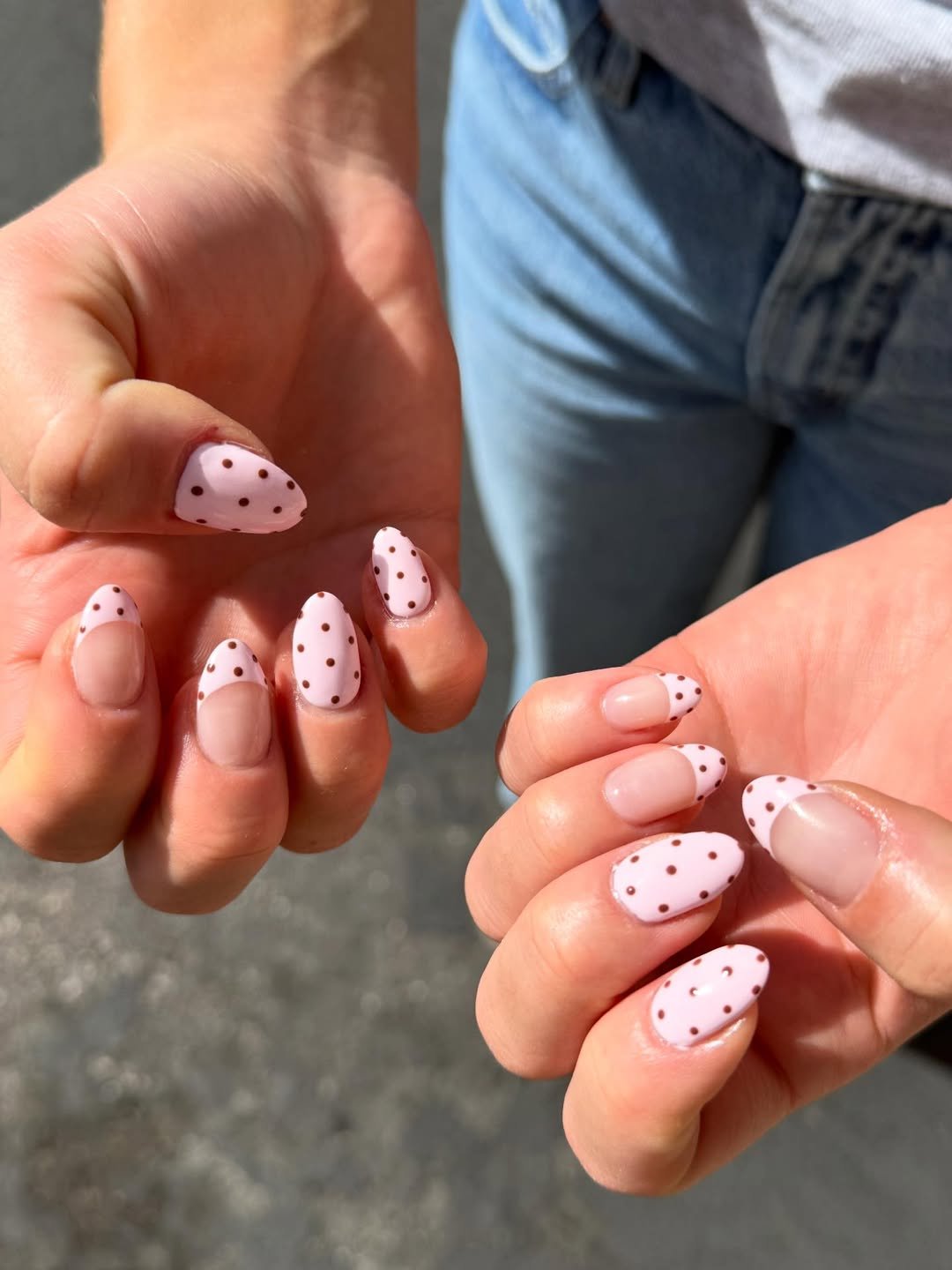 Soft blush French tips sprinkled with tiny brown polka dots? It’s giving understated Parisian café vibes. Clean, delicate, and just a little flirty.
