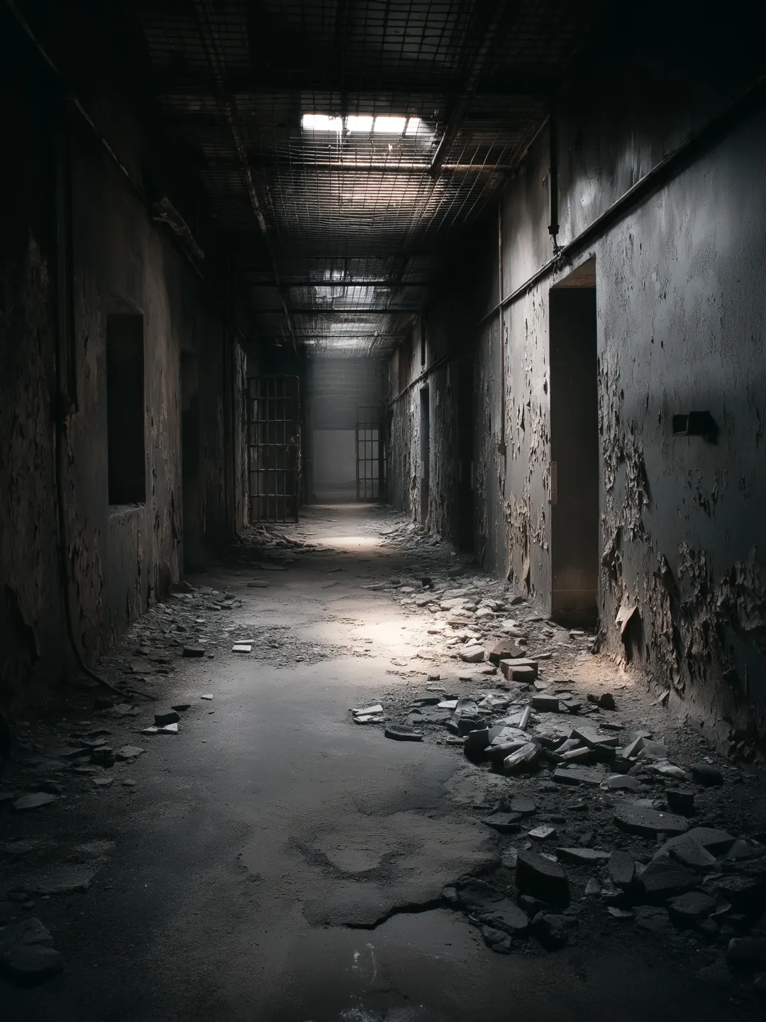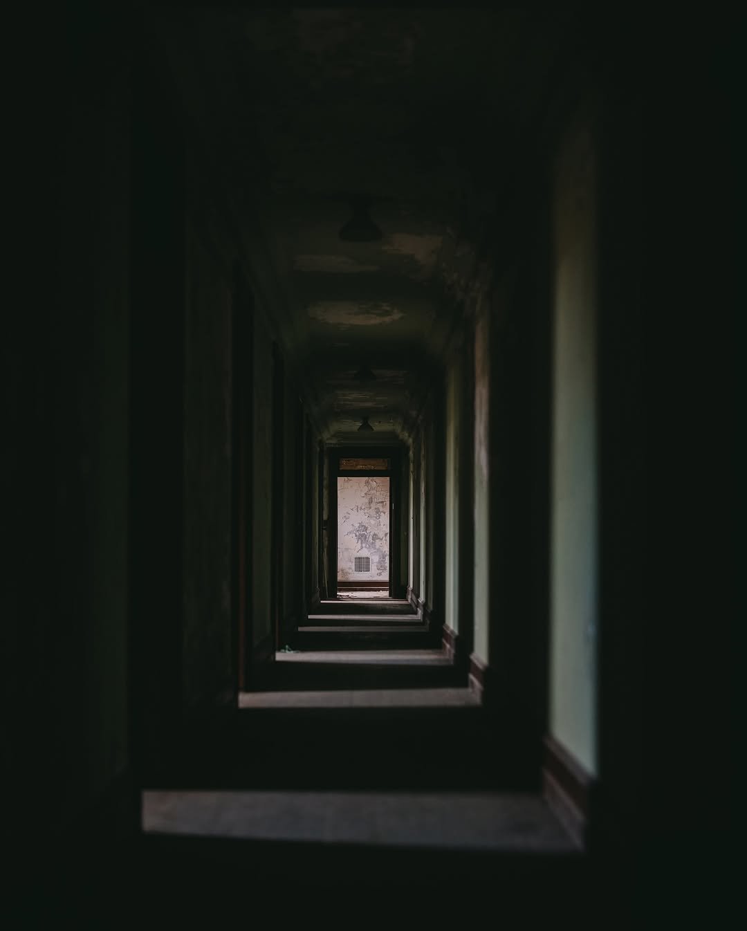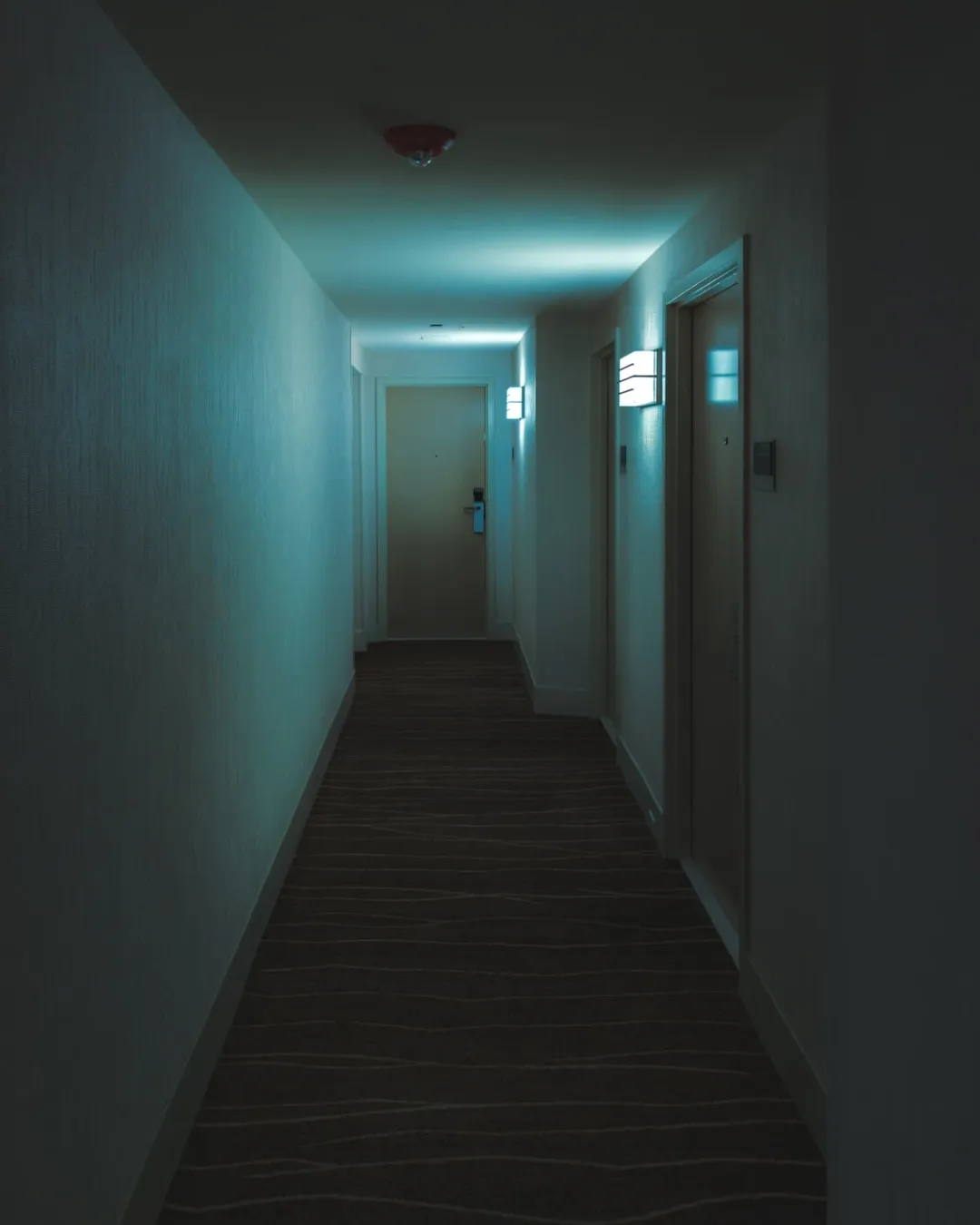This hallway feels like a scene from a film you can’t quite place, but don’t want to leave. Low lighting, long perspective, and deep shadows create a sense of quiet drama that pulls you in.