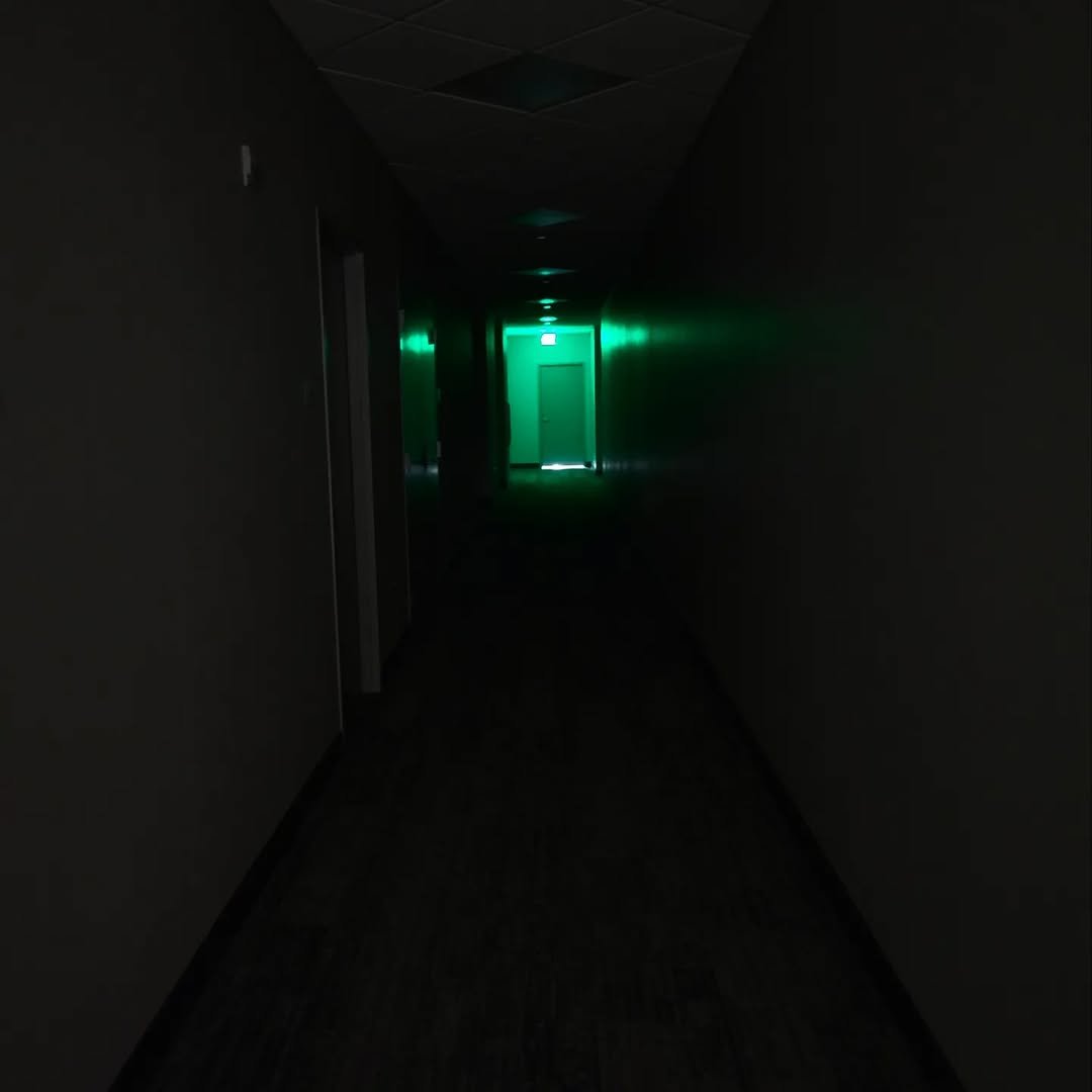 This hallway leans into minimalism with a twist. Clean lines, deep shadows, and that unexpected green glow at the end give it an almost futuristic feel.