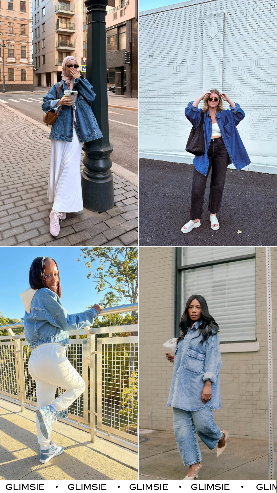 An oversized acid-wash denim coat layered over classic jeans and a white tee? Bold. Add sharp black ankle boots and a structured bag, and it’s instantly elevated.