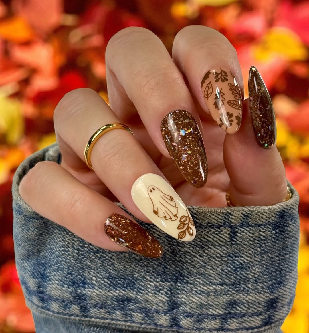 This set feels like fall wrapped up in a cozy sweater. The warm brown glitter paired with delicate leaf detailing hits that sweet spot between seasonal and timeless. It’s giving crunchy leaves, golden hour, and hot coffee energy.